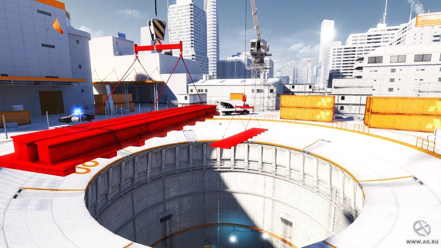 - Погружение. В Mirror's Edge нет игрока и его героя, есть только вы - девушка по имени Фейт, сломя голову бегущая по крышам. Уникальная анимация и вид от первого лица обеспечивают небывалое погружение в иную реальность. Вы почувствуете под руками шершавый бетон, ощутите, как толкнется в ноги твердая поверхность после удачного прыжка. Мир закачается перед глазами, когда вы повисните на перекладине над бездной, и конвульсивно вздрогнет, если не сумеете увернуться от пули. Взглянув с крыш вниз, вы забудете о том, где находитесь на самом деле, и станете дрожать от страха, пока адреналин расходится по организму.